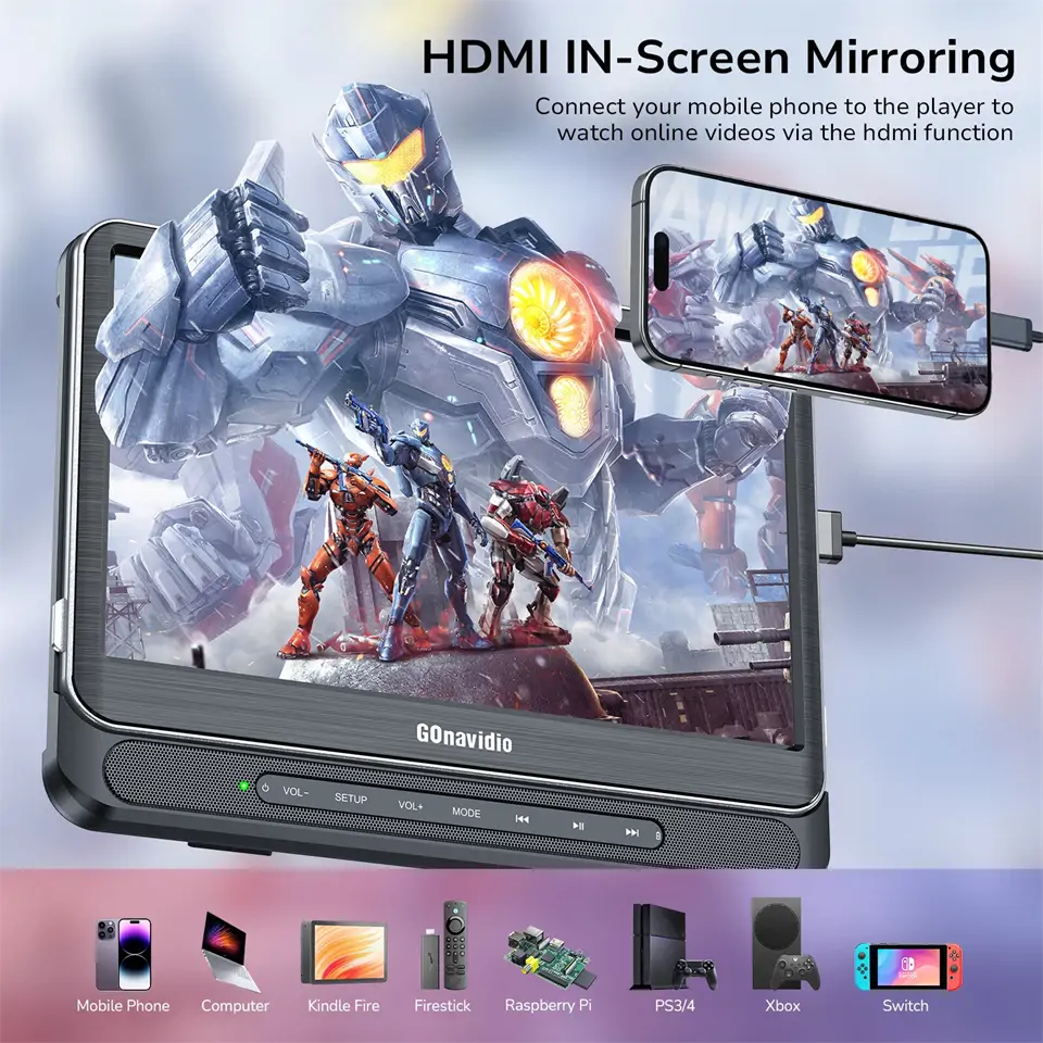 A GOnavidio NB1021B fejtámlára rögzíthető autós DVD lejátszó használata egyszerű és gyors. Miután rögzítetted az autó fejtámlájára a mellékelt rögzítőkkel, csak helyezd be a kívánt adathordozót, legyen az DVD, USB vagy SD kártya. A lejátszás automatikusan elindul, és a beépített távirányítóval könnyen szabályozhatod a hangerőt vagy válthatsz a filmek között. Ha hosszabb autóútra indulsz, győződj meg róla, hogy az akkumulátor teljesen fel van töltve, vagy használd a mellékelt autós töltőt, hogy útközben is használhasd az eszközt.