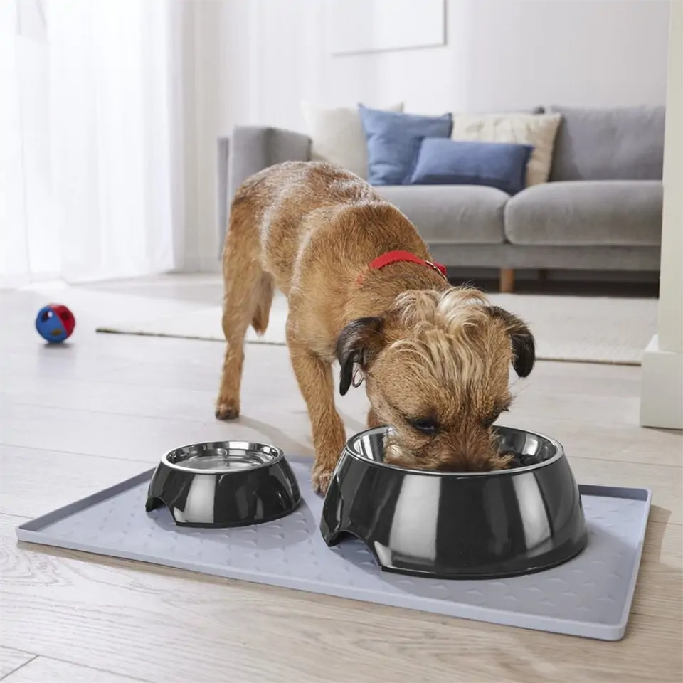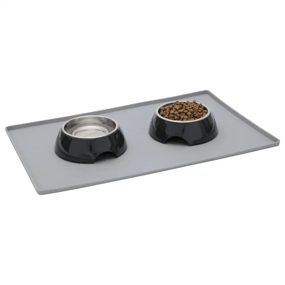Etető alátét: Szilikonból készült, szürke színű alátét, amely praktikus kiegészítője lesz otthonodnak. Az emelt perem megakadályozza a víz és az étel kifolyását. Könnyen tisztítható, csúszásmentes kialakítása miatt a padlón marad.