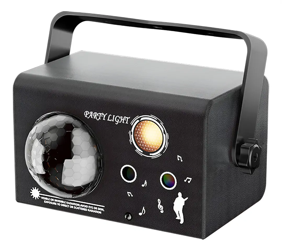 Funkciókban gazdag: 4 üzemmód – hangvezérlés, automata, stroboszkóp és távirányító, így mindig az adott bulinak vagy eseménynek megfelelő fényhatást választhatod.