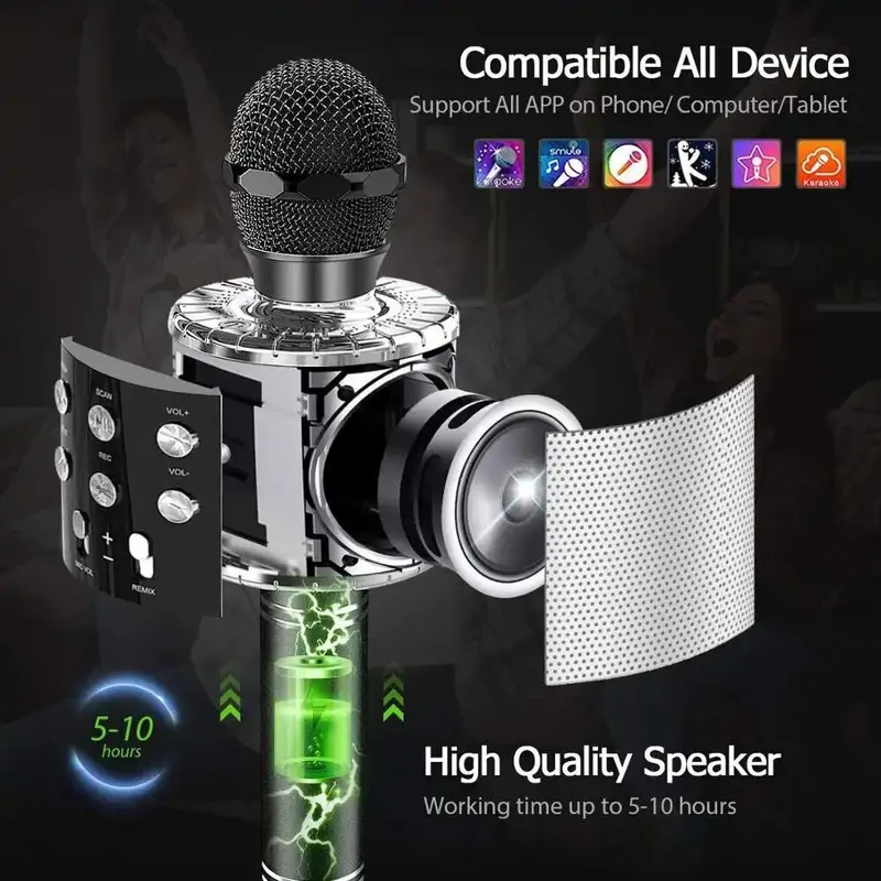 Ha szeretsz énekelni, partizni, vagy épp csak zenét hallgatni otthon vagy bárhol máshol, de anélkül, hogy bármi is zavarna, akkor pont neked való ez a csodálatos, sokak által keresett vezeték nélküli karaoke mikrofon. Nem kell döntened, hogy mikrofont vagy hangszórót válassz – egy eszköz kapsz mindkettőt, és mellette még hangfelvételre is van lehetőséged. Nem kell kábelekkel babrálni, nincs korlát a mozgásodban, és minden egybeépített, újratölthető akkumulátorral, amit bárhol feltölthetsz.