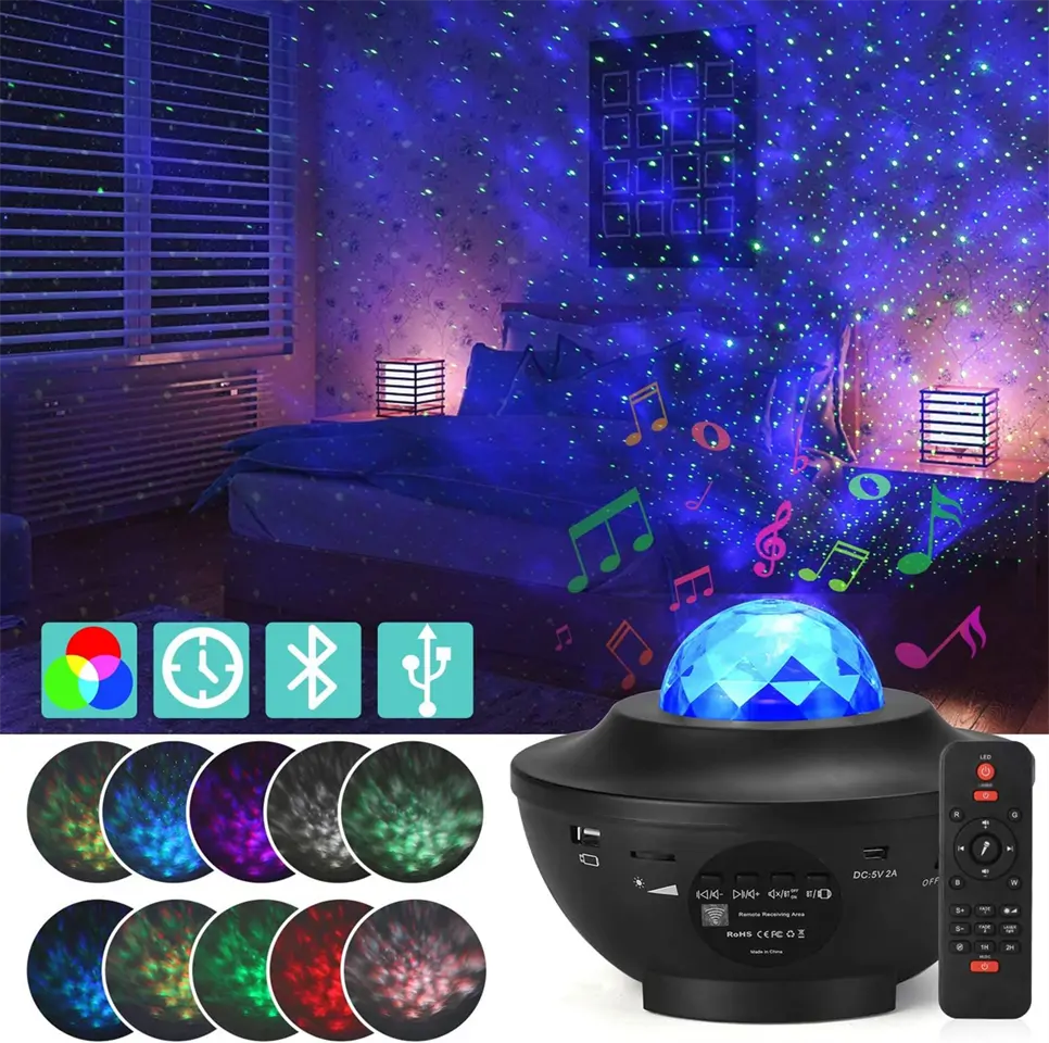 - Zseniális 10 színkombináció és 21 megvilágítási mód: Négy alapvető színnel – kék, fehér, zöld, piros – keverhetsz ki lenyűgöző galaktikus effekteket, miközben a csillagok folyamatosan csillognak, és az óceán hullám mód 21 variációt kínál, hogy minden alkalomra megtaláld a tökéletes csillagos party fényt.
