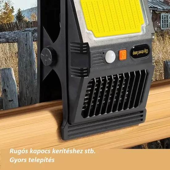 - Energiatakarékos és környezetbarát: Nincs szükség külső áramforrásra, a beépített napelem által töltött 1600 mAh kapacitású (és akár nagyobbra is cserélhető) 18650 típusú akkumulátor biztosítja az éjszakai működést.