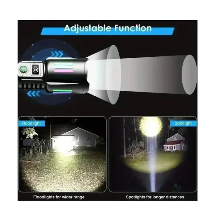 - Állítható fókusz (zoom): Széles vagy keskeny fénykúp – egyetlen mozdulattal az igényeidhez igazíthatod a világítást.