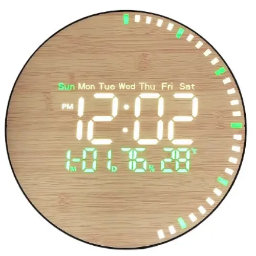 Ha szereted a bambusz falióra modern eleganciáját, de mellette praktikus, multifunkciós megoldást keresel, akkor színre lép a távirányítós LED bambusz falióra. Ez a varázslatos led falióra egyszerre mutat analóg vonalakat a klasszikus időérzetért és a nagy, könnyen olvasható fehér-zöld digitális számokat a gyors tájékozódásért, miközben dátumot, hét napját, páratartalmat és hőmérsékletet is kijelzi. A koreai ihletésű bambusz dizájn briliáns módon ötvözi a hagyományos eleganciát a modern technológiával, így a szobádba varázsol egy csodálatos kulturális érintést, ami lenyűgöző látványt nyújt.