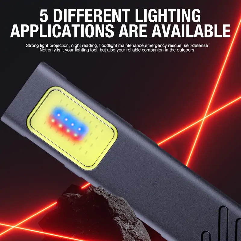 - Erős mágneses rögzítés: A zseblámpa mágnessel könnyedén rögzíthető fémfelületekre, így kezeid szabadok maradhatnak a feladataid elvégzése közben.