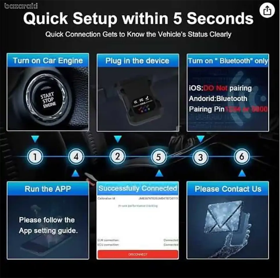 Diagnosztizáld autód hibáit pillanatok alatt okostelefonoddal! Bluetooth 5.0 technológia, hibaolvasás és törlés, élő adatok valós időben.