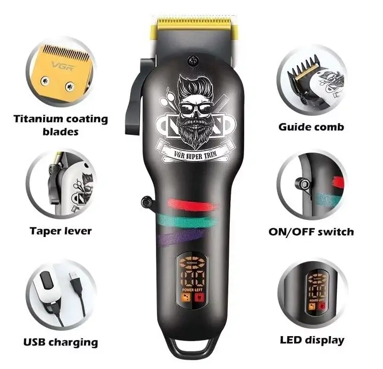 Professzionális VGR V-971 barber szakáll- és hajvágó precíz, önélező pengékkel, LED kijelzővel és hosszú üzemidővel!