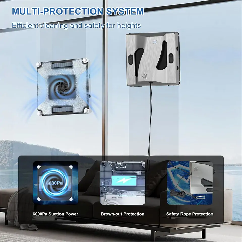 A Chovgry ablaktisztító robot egy lenyűgöző eszköz, amely a legfejlettebb technológiával van felszerelve, hogy a legjobb tisztítási eredményeket érje el. A 6000Pa szívóerő valódi erőműként dolgozik, hogy még a legmakacsabb foltokat is eltávolítsa az üvegfelületekről. A kétszeres 100 ml-es víztartály lehetővé teszi a robot számára, hogy akár 2,5 órán át is folyamatosan dolgozzon, így egyszerre akár 60 négyzetméter felületet is megtisztíthat. Az intelligens érzékelők gondoskodnak arról, hogy a robot minden felületen biztonságosan és hatékonyan működjön, még a keret nélküli üvegfelületeken is. A csendes működés garantálja, hogy nem zavar meg téged pihenés közben sem. Az időtakarékos funkciók pedig biztosítják, hogy többé ne kelljen órákat vesztegetned a fárasztó ablakpucolásra.