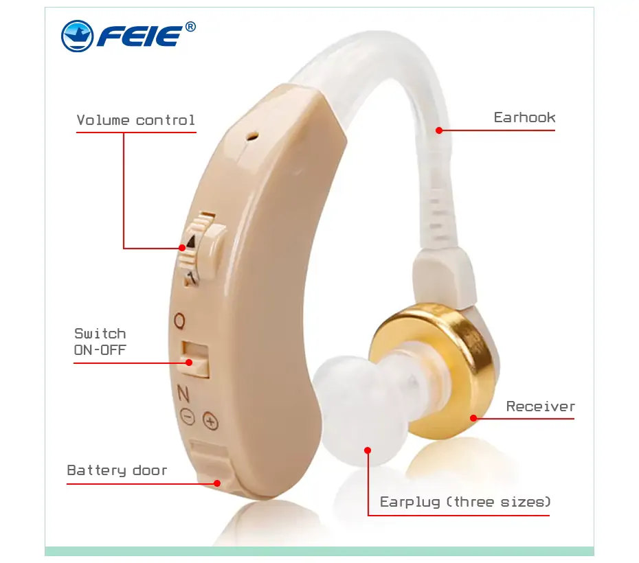 - Diszkrét és kényelmes egész napos viselet: Tudjuk, hogy egy hallássegítő eszköznél a kényelem kulcsfontosságú. Senki sem szeret egy nehéz, kényelmetlen tárgyat viselni. A FEIE készülék ergonomikus, fül mögötti (BTE) kialakítása követi a fül vonalát, és pehelykönnyű műanyagból készült. A fülhorog és a készülékház közötti réz oszlopos csatlakozás biztosítja a masszív, tartós szerkezetet, így nem kell aggódnod a törés miatt. Olyan könnyű és diszkrét, hogy alig érzed majd a füledben, így magabiztosan viselheted reggeltől estig.