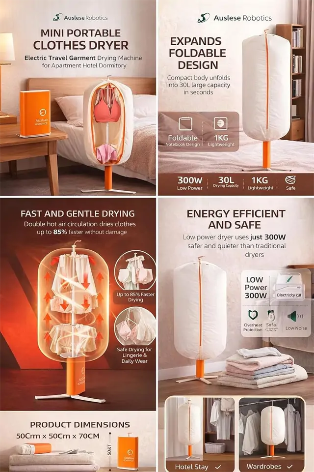Hordozható mini elektromos ruhaszárító – Az otthoni ruhaszárítás mesterfogása
