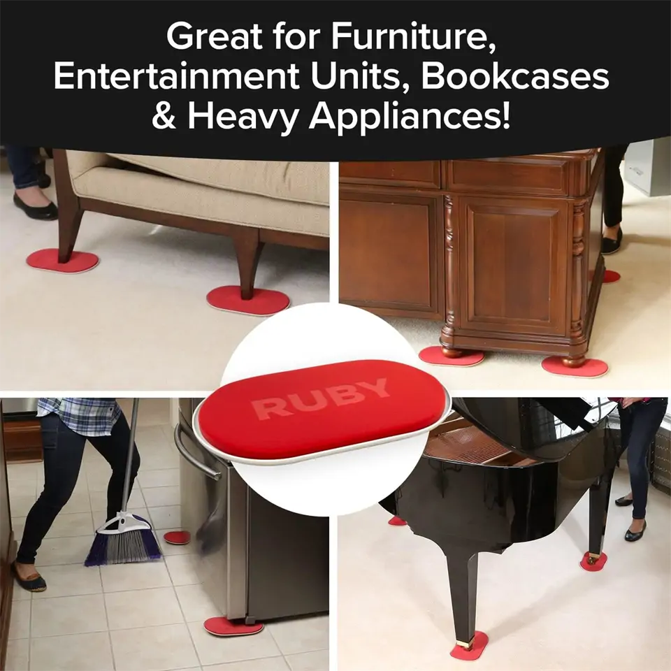 - Egyszerű használat: A Ruby bútormozgatóval a nehéz bútormozgatás könnyű lépésekké válik. Csak emeld fel kissé a bútorod lábát, helyezd alá a korongokat, és már meg is kezdheted a zökkenőmentes mozgatást.