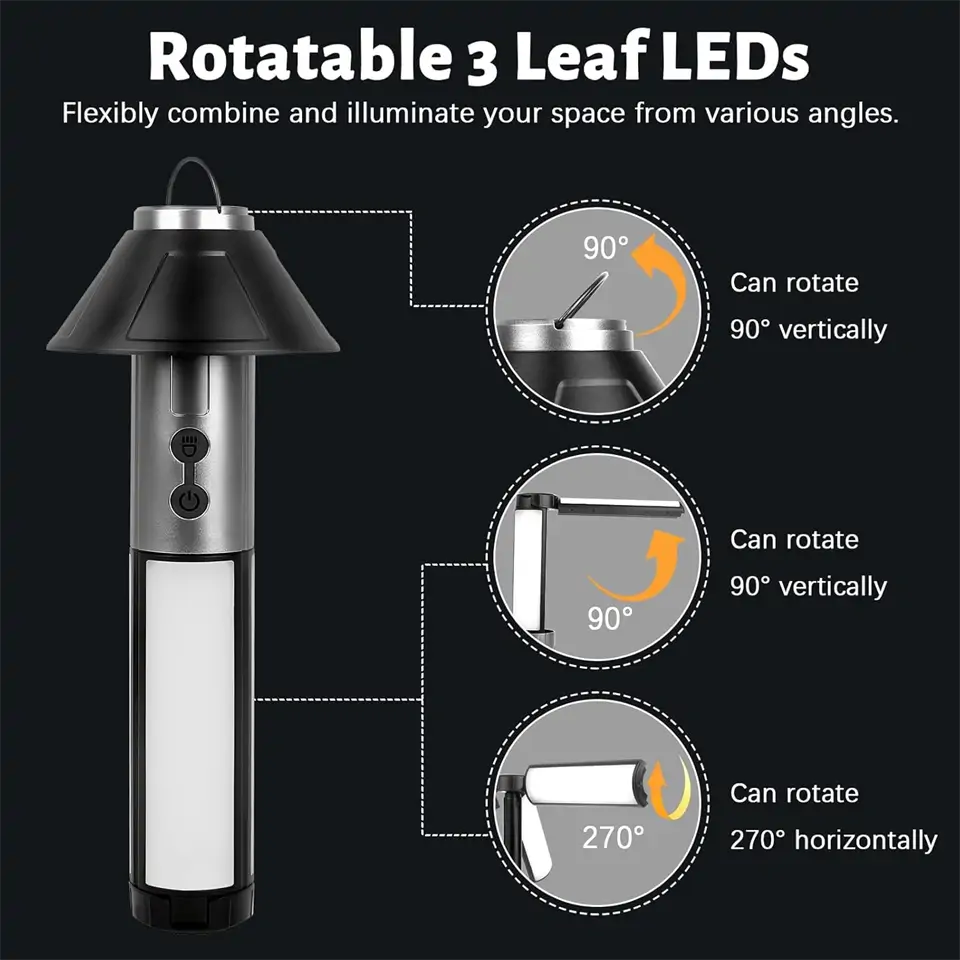 A YD-2324 kemping lámpa valódi megmentőként lép be az életedbe, amikor a sötétség fenyeget. Kompakt és teleszkópos kivitelének köszönhetően könnyedén elfér a hátizsákodban vagy autód kesztyűtartójában, így mindig kéznél lehet. Három állítható fejével, melyek 270°-os elforgatási lehetőséget biztosítanak, minden sötét sarkot megvilágíthatsz, legyen szó camping kalandokról vagy egyszerű áramkimaradásról – a YD-2324 mindent fényárba borít. Érezd magad biztonságban minden időjárási körülmények között is, hiszen a YD-2324 ellenáll az esőnek és a pornak az IPX5 védettség jóvoltából. Ez még nem minden! A beépített 3000 mAh akkumulátor garantálja, hogy ne kelljen áramforrás után kutatnod, míg a modern Type-C csatlakozóval békésen töltheted útközben is.